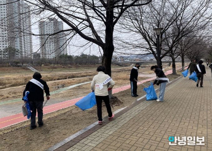 이번 활동에는 주민자치회 위원과 자원봉사자 등 20여 명이 참여해 관내 주요 도로와 골목길, 공원 및 하천 주변을 중심으로 겨우내 쌓인 쓰레기와 불법투기 폐기물을 집중 수거했다.