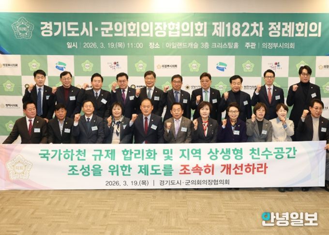 안녕일보 배윤 기자 | 경기도시군의회의장협의회 회장인 동두천시의회 김승호 의장이 제안한 '국가하천 규제 합리화 및 지역 상생형 친수공간 조성을 위한 제도 개선 촉구 건의안'이 19일 의정부 아일랜드캐슬에서 열린 제182차 정례회의에서 만장일치로 채택됐다.