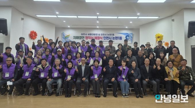 안녕일보 배윤 기자 | 2026년 3월 19일, 여주시 세종대왕면 주민자치위원회와 인천시 남동구 논현1동 주민자치회가 자매결연 협약식을 체결했다. 협약식은 김희수 세종대왕면장과 이인희 논현1동장, 두 지역의 주민자치위원과 주민자치회원 등 총 50여 명이 함께한 가운데 열렸다.