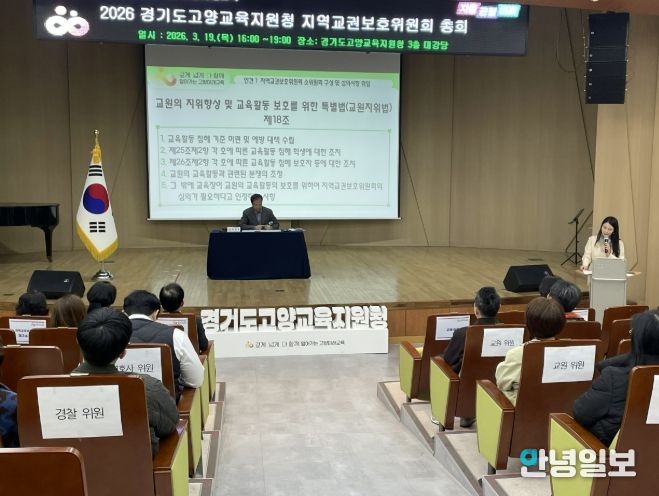 안녕일보 배윤 기자 | 경기도고양교육지원청 고양교권보호지원센터는 3월 19일 고양교육지원청 대강당에서 지역교권보호위원회 심의위원을 대상으로 2026학년도 지역교권보호위원회 제1차 총회 및 심의위원 역량강화 연수를 실시했다.