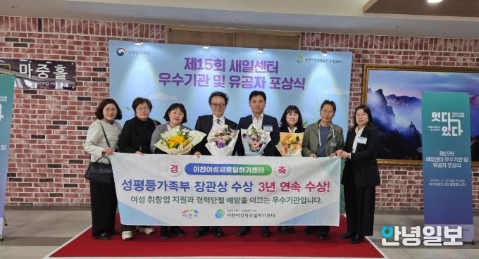 안녕일보 배윤 기자 | 이천여성새로일하기센터(이하 이천새일센터)가 3월 27일 서울 마포중앙도서관에서 열린 ‘2026년 여성새로일하기센터 유공 포상식’에서 우수기관 및 종사자, 우수기업, 우수사례 등 4개 부문에서 성평등가족부 장관상을 수상했다.