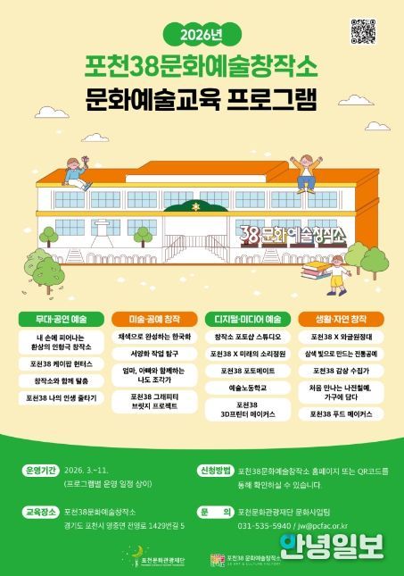 포천38문화예술창작소는 앞으로도 다양한 문화예술교육과 전시, 공간 운영을 통해 시민과 더욱 가까이 호흡하는 지역 문화예술공간으로서의 역할을 이어갈 계획이다.
