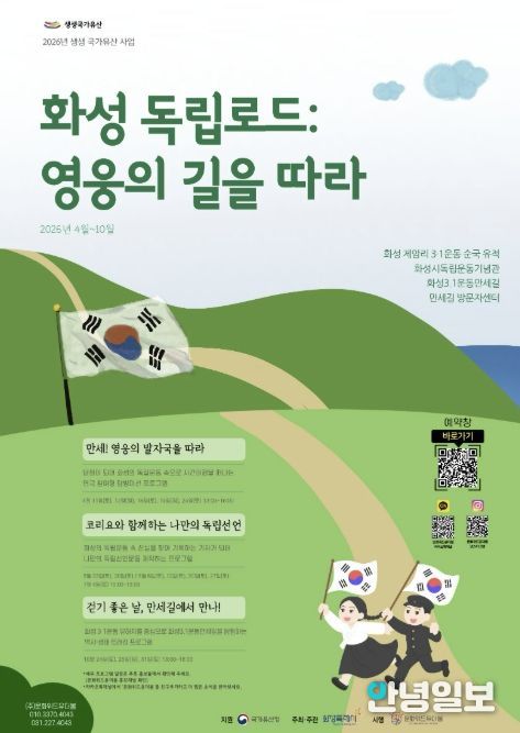 오는 4월에는 대표 프로그램인 ‘만세! 영웅의 발자국을 따라’를 진행한다. 참가자들은 화성 3·1운동 만세길을 직접 걸으며 스토리텔링형 연극에 참여해 당시 지역 독립운동의 열기를 경험할 수 있다. 프로그램은 무료로 제공하며, 3월 31일부터 포스터 하단의 QR코드를 이용해 참가 신청을 접수할 예정이다.