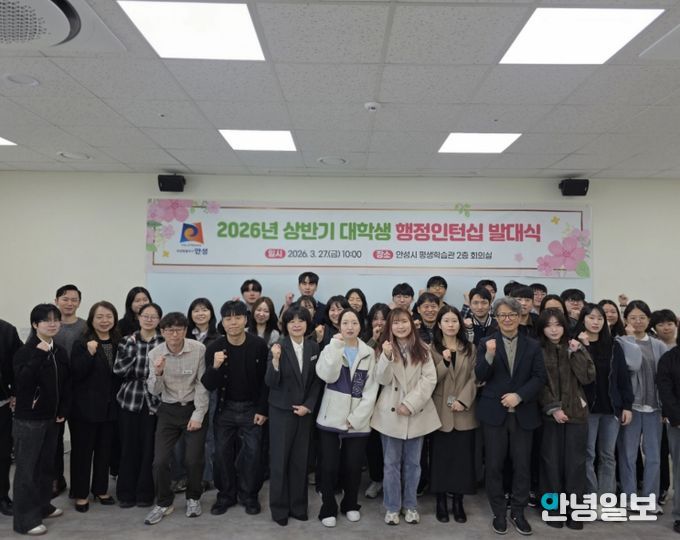 안녕일보 배윤 기자 | 안성시는 지난 27일 안성시 평생학습관 회의실에서 관내 대학생들과 공직자가 함께 시정 발전을 도모하는 ‘2026년 상반기 대학생 행정인턴십 발대식’을 개최했다.
