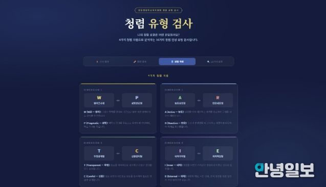 임정모 교육장은 “이번 검사는 직원들이 자신의 청렴 성향을 재미있게 확인하면서도 자부심을 느끼는 계기가 됐다”며,“분석된 데이터를 바탕으로 각 부서와 직무 특성에 최적화된 청렴 정책을 수립해 나가겠다”고 밝혔다.