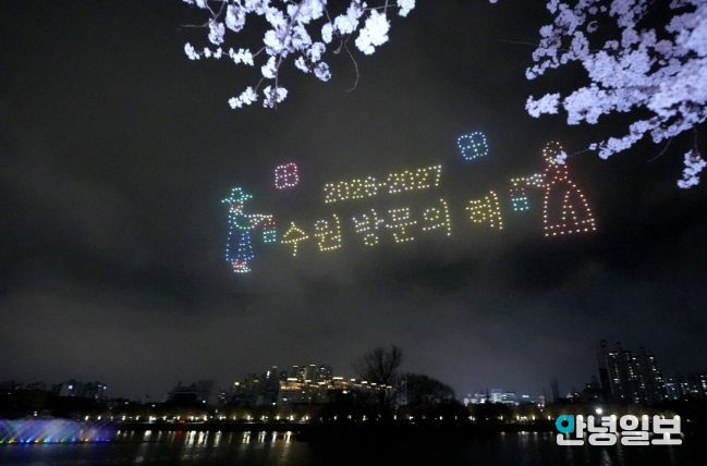 안녕일보 배윤 기자 | 세계관개시설물 유산인 만석거 일대를 빛으로 수놓는 ‘2026 만석거 새빛축제’의 메인행사인 드론쇼, 불꽃쇼가 4~5일 열려 시민들의 발길을 끌었다.