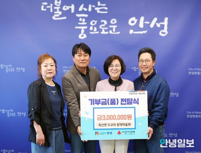 안녕일보 배윤 기자 | 안성시 죽산면 두교리 동막마을회가 지역사회 발전과 복지 증진을 위해 현금 300만 원을 안성시에 기부했다.
