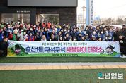 안녕일보 배윤 기자 | 의정부시 송산2동주민센터는 3월 13일 세계 물의 날(매년 3월 22일)을 기념해 자생단체 회원 80여 명과 동 직원 18명 등 총 100여 명이 참여한 가운데 부용천 제방길과 둘레길 일대에서 새봄맞이 하천 환경정화 활동을 실시했다. 이번 활동은 세계 물의 날을 맞아 하천 환경의 중요성을 알리고 주민과 함께 깨끗한 하천 환경을 조성하고자 마련했다. 특히 봄철 이용객 증가에 대비해 산책로 주변과 제방 구간을 집중적으로 청소했다. 하천 주변에 부착된 불법 현수막과 전단지 등 불법 광고물을 정리하며 도시 미관 개선에도 힘을 보탰다. 참여자들은 쾌적한 하천 환경 조성을 위해 구슬땀을 흘리며 환경정화 활동에 적극 동참했다. 자생단체 회원들은 “새봄을 맞아 우리 이웃들이 많이 걷는 하천변을 청소해 매우 뜻깊었다”며 “앞으로도 우리 가족과 이웃들이 깨끗한 환경에서 산책을 즐길 수 있도록 열심히 동참하겠다”고 전했다. 황보경 동장은 “이른 아침부터 우리 동의 깨끗한 환경 조성을 위해 앞장서 주시고 적극적으로 참여해 주신 자생단체 회원분들께 감사드린다”며 “앞으로도 주민들과 협력해 깨끗하고