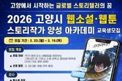 안녕일보 배윤 기자 | 고양산업진흥원이 웹콘텐츠 산업을 이끌어갈 스토리 전문 인재 발굴을 위한 ‘2026 고양시 웹소설·웹툰 스토리작가 양성 아카데미’ 교육생을 모집한다. 이번 교육과정은 진흥원과 스토리 콘텐츠 분야 전문가들로 구성된 한국만화스토리협회와 협업해, 고양시 작가 지망생들의 데뷔를 목표로 이도경, 김양수, 송향희 등 현역 작가들이 다양한 창작 노하우를 공유할 예정이다. 스토리 작가 데뷔에 관심 있는 고양시민, 고양시 소재 대학교 재학생·졸업생을 대상으로 하며, 오는 3월 19일까지 이메일로 신청하면 된다. 교육은 4월 10일부터 매주 금요일 총 10회에 걸쳐 진행되며, 자세한 내용은 포스터 내 QR코드 또는 진흥원 누리집에서 확인할 수 있다. 진흥원은 웹툰·웹소설 등 부가가치가 큰 웹콘텐츠 IP를 발굴하고, 우수한 창작 인재 양성을 위한 교육 사업을 추진하고 있다. 특히 ‘IP융복합 콘텐츠 클러스터’조성을 통해 고양시 특화 웹콘텐츠 산업을 지속적으로 육성해 나갈 계획이다.