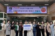 안녕일보 배윤 기자 | 수원시여성리더회가 16일 수원시청 본관 1층에서 저소득가정을 위한 후원금 300만 원을 수원시에 전달했다. 후원금은 형편이 어려운 가정에 지원할 예정이다. 전달식에는 김은주 수원시 여성가족국장, 김수민 수원시여성리더회 총회장 등이 참석했다. 김수민 총회장은 “우리 여성리더회 임원진과 회원들의 따뜻한 마음을 모았다”며 “형편이 어려운 가정에 그 마음이 잘 전달되길 바란다”고 말했다. 수원시여성리더회는 수원시 양성평등기금 사업으로 운영되는 ‘수원시 여성지도자대학’ 수료생들로 구성된 단체다. 여성의 권익 증진과 복지 향상, 지역사회 발전을 목표로 2004년 12월 출범했다. 수료생 1240명이 활동 중이며, 매년 저소득가정 후원금과 물품 기부, 한부모가정 지원, 지역 복지시설 봉사활동 등 다양한 사회공헌 활동을 하고 있다.