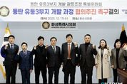 안녕일보 배윤 기자 | 화성특례시의회 '동탄 유통3부지 개발 갈등조정 특별위원회'는 17일 의회 대회의실에서 동탄 유통3부지 개발과정 협의추진 촉구결의를 진행했다. 이번 촉구결의에서는 특별위원회가 공식적으로 구성되어 활동 중인 상황에서, 유통3부지 개발과 직결된 주요 안건이 사전 설명이나 협의 없이 도시계획심의위원회에 제출된 데 대한 문제의식을 공유하고, 향후 합리적인 협의 절차의 필요성을 분명히 하기 위해 마련됐다. 이날 촉구결의에서 특별위원회는 ▲도시계획심의위원회 안건 제출 경위에 대한 집행부의 공식적이고 신속한 설명 ▲유통3부지와 관련된 모든 주요 행정 절차에 대해 특별위원회와의 사전 보고 및 협의 이행 ▲의회를 단순한 추인 기구로 인식하는 행정 관행을 개선하고 협치 원칙을 존중할 것을 촉구했다. 특히, 특별위원회가 갈등 해소를 위한 공론의 장으로서 실질적인 기능을 하기 위해, 향후 사업 추진 과정 전반에서 의회와의 긴밀한 소통과 충분한 협의가 반드시 전제되어야 한다는 점을 강조했다. 공동위원장단(김상수‧김영수‧전성균)은 한목소리로 “동탄 유통3부지 개발은 지역 주민의 생활환경과 직결되는 사안