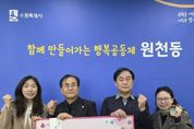안녕일보 배윤 기자 | 지난 17일 경기중앙지방법무사회 수원지부는 원천동 저소득 지역주민들을 돕기 위해 성금 100만 원을 원천동행정복지센터(동장 김선혁)에 후원했다. 이번에 전달된 성금은 경제적 어려움을 겪고 있는 원천동 저소득 지역주민들을 위해 사용될 예정으로, 지역사회 나눔 문화 확산에 기여할 것으로 기대된다. 경기중앙지방법무사회 수원지부 관계자는 “작은 정성이지만 지역 내 어려운 이웃들에게 도움이 되길 바란다”며 “앞으로도 지역사회와 함께하는 다양한 나눔 활동을 지속해 나가겠다”고 밝혔다. 김선혁 원천동장은 “어려운 이웃을 위한 따뜻한 나눔에 깊이 감사드린다”며 “후원금은 도움이 꼭 필요한 저소득 주민들을 위해 소중히 사용하겠다”고 전했다. 한편, 경기중앙지방법무사회 수원지부는 매년 꾸준히 성금을 전달하여 지역사회 복지 증진을 위해 힘쓰고 있다.