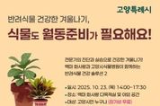 안녕일보 배윤 기자 | 고양특례시는 반려식물의 건강한 겨울나기를 위한 맞춤 해법을 제공하는 ‘그린케어, 겨울 대비 반려식물 돌보기 행사’를 오는 10월 23일 오후 2시부터 5시 30분까지 백마 화사랑에서 개최한다고 밝혔다. 먼저 백마 화사랑 야외 공간에서는 고양시식물병원 전문가가 상주해 시민이 직접 가져온 반려식물에 대해 1:1 현장 진단을 제공하고, 병해충, 과습 등 식물의 상태에 따라 분갈이, 영양제 처방 및 맞춤형 월동 관리법을 안내한다. 별도 신청 없이 당일 현장 접수로 참여 가능하다. 실내에서는 ‘반려식물 동절기 핵심 관리법’을 주제로 체험형 특강이 진행된다. 겨울철 생육 관리 요령, 휴면기 대비 가지치기 및 분갈이 실습 등 내년 봄의 성장을 위한 전문적인 지식을 습득할 수 있다. 특강은 백마 화사랑 누리집에서 선착순 12명까지 신청할 수 있다. 시 관계자는 "겨울은 식물이 가장 취약해지는 시기인 만큼, 이번 행사를 통해 전문가의 과학적인 진단과 맞춤형 솔루션으로 반려식물과 더욱 건강하고 풍요롭게 겨울을 나시길 바란다”고 전했다. 행사에 대한 자세한 내용과 특강 신청은 백마 화사랑 누리집