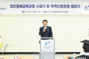 안녕일보 배윤 기자 | 구리시는 2월 24일 구리시평생학습관에서 ‘2025년 성인 문해 교육 과정 수료식 및 학력인정과정 졸업식’을 개최했다. 2025년 성인 문해 교육은 2025년 3월 17일부터 2026년 2월 13일까지 운영됐으며, 학습자의 학습 욕구와 수준에 맞춰 초급, 중급, 학력 인정 3단계, 중등 예비 등 4개 과정으로 진행됐다. 이 가운데 교육청 지침에 따라 출석률 3분의 2(66.7%) 이상을 충족한 48명의 학습자가 수료증을 받았다. 특히 이번 수료식에서는 4명의 어르신이 ‘성인 문해 학력 인정 3단계’ 과정을 성실히 이수해 경기도교육청으로부터 공식 초등 학력 인정서를 받는 값진 성과를 거뒀다. 이날 행사에 참석한 백경현 구리시장은 “건강상의 어려움이나 가정 형편 속에서도 배움의 끈을 놓지 않으신 어르신들께 지난 1년은 무엇과도 바꿀 수 없는 소중한 시간이었다”라며 “나이와 환경의 제약을 넘어 스스로와의 약속을 지켜낸 여러분께 깊은 경의를 표한다”라고 격려했다. 이어 “성인 문해 교육은 단순히 글을 배우는 과정을 넘어 새로운 삶에 도전하는 뜻깊은 여정”이라며 “오늘의 졸업이 끝이