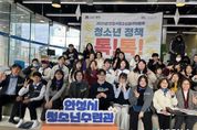 안녕일보 배윤 기자 | 안성시청소년수련관은 지난 12월 6일 ‘안성시청소년참여위원회’가 1년간 준비한 청소년 정책을 발표하는 ‘청소년 정책 톡!톡!’ 행사를 개최했다. 이날 행사에는 16명의 청소년참여위원회 위원을 비롯해 안성시장, 안성시 청소년 30여 명이 참석해 청소년이 직접 제안한 정책에 대해 논의하는 뜻깊은 시간을 가졌다. 청소년참여위원회는'청소년기본법' 제5조의2에 근거해 설치된 제도적 기구로, 청소년 정책 추진 과정에 청소년이 직접 참여하도록 마련된 장치다. 안성시는 매년 9~24세 청소년을 공개 선발해 청소년이 정책 수립 과정에 직접 참여할 수 있도록 지원하고 있다. 2025년 청소년참여위원회 위원들은 기존 청소년 정책 모니터링과 새로운 정책 제안을 위해 지역 축제·행사 등에 참여해 청소년 욕구 조사를 진행했으며, 매월 정기회의와 워크숍을 통해 안성시 청소년을 대표하는 정책을 마련하기 위해 노력해 왔다. 이번 행사에서는 ▲청소년 건강을 위한 학생 아침 간편식 모니터링 ▲청소년 진로 고민 해결을 위한 진로체험교육 모니터링을 통해 기존 정책의 현황과 개선 방안을 발표했다. 또한 신규 정책으