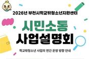 안녕일보 배윤 기자 | 부천시학교밖청소년지원센터는 오는 2월 25일, 오후 2시 학교밖청소년 전용공간 부.스.터. (송내어울마당 1층)에서 시민과의 소통을 확대하고 2026년 연간 운영계획을 공유하는 ‘사업설명회’를 개최한다고 밝혔다. 이번 시민 소통 사업설명회는 부천여성청소년재단(대표이사 이강인)이 운영하는 부천시학교밖청소년지원센터(센터장 백진현)가 학교밖청소년, 보호자, 유관기관, 지역시민과 함께 한 해의 운영 방향을 공유하는 자리이다. 특히 청소년이 자신의 삶과 진로를 스스로 기획해보는 시간으로 구성되며, 단순한 사업 안내를 넘어 청소년의 주도적 성장과 참여 중심의 운영 문화를 만들어가는 계기가 될 예정이다. 올해부터 학교밖청소년지원센터는 프로그램 모집·운영 방법을 개편하여 봄학기·여름학기 각 10주 과정의 ‘학기제 운영’으로 전환한다. 이에 따라 교육, 내일지원(자립), 문화활동, 정서지원, 복지 등 전 분야 사업이 체계적으로 구성되며, 청소년이 자신의 목표에 맞춰 단계적으로 참여할 수 있도록 설계됐다. 설명회에서는 ▲검정고시 및 기초학습 등 교육지원 ▲자격 취득 및 기술훈련 중심의 내일지원 ▲동아리·