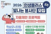 안녕일보 배윤 기자 | 광명시 인생플러스센터가 ‘2026년 인생플러스 빛나는 봉사단’ 제3기 봉사자 40명을 2월 23일부터 3월 11일까지 모집한다. ‘인생플러스 빛나는 봉사단’은 40~64세 광명시 중장년이 지닌 지식과 역량을 평생학습 자원으로 확장해 지역공동체에 필요한 변화를 함께 만들어가는 ‘재능활용 학습실천’ 자원봉사 활동이다. 지난 1‧2기 활동에는 총 50명의 봉사자가 참여해 ▲아동 학습보조 및 책놀이 ▲1:1 디지털 코칭 ‘신중년 디지털 아지트’ ▲어르신 아로마 향기테라피 ▲중장년 드론 조종 체험 등 다양한 활동을 펼쳤다. 이들은 총 413회, 누적 1천358시간에 걸친 봉사활동으로 지역사회에 활력을 불어넣었다는 평가를 받았다. 이번 3기 모집 분야는 크게 현장지원형(10명)과 프로젝트형(30명)으로 나뉜다. 현장지원형은 센터 프로그램 운영과 행사 안내를 돕는 ‘인생플러스 서포터즈’와 교육강사 보조 및 모니터링 일지를 작성하는 ‘학습 모니터링’으로 운영한다. 프로젝트형은 ‘신중년 디지털 아지트(1:1 코칭)’, ‘초등학생 책 낭독놀이’를 비롯해 봉사자가 직접 프로그램을 기