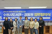 안녕일보 배윤 기자 | 수원시도서관과 사회복지법인 경동원은 14일 경동원에서 ‘교류 협력을 위한 업무협약’을 체결했다. 공공도서관과 지역 복지기관이 함께 어린이의 독서 접근성을 높이고, 독서 친화적 성장환경을 조성하기 위한 협약이다. 수원시도서관은 경동원 어린이를 위한 독서 활동 프로그램과 도서 기부, 독서 서비스, 공연 등 다양한 독서문화 진흥 사업을 추진할 계획이다. 두 기관은 지역사회 어린이 보육 기관과 연계해 창의력과 표현력을 키울 수 있는 독서교육 프로그램을 운영하고, 교육·문화 협력을 위한 지속 가능한 교류 체계를 이어가기로 했다. ‘아이들을 위한 스토리텔링과 책놀이’ 프로그램을 10월 14일부터 11월 4일까지 매주 화요일 경동원에서 진행한다. 스토리텔링과 책놀이로 어린이의 창의력 발달을 돕고, 교사의 소통 능력을 높이는 내용으로 구성됐다. 이날 협약식에는 김병수 도서관사업소장, 신승주 경동원장, 이명옥 선경도서관장 등이 참석했다. 김병수 도서관사업소장은 “이번 협약은 어린이들의 독서 환경 격차를 줄이고, 누구나 동등하게 독서문화의 혜택을 누리도록 하기 위한 공동의 약속”이