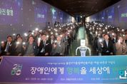 안녕일보 배윤 기자 | 이상일 용인특례시장은 14일 기흥구 상하동 빛으로아트스토리에서 열린 ‘기흥장애인복지관 개관 20주년 기념식’에 참석해 복지관의 20주년을 축하하고 관계자들을 격려했다. 기흥장애인복지관(관장 김선구)이 주최·주관한 기념식엔 이상일 시장, 복지관 이용자, 후원자, 자원봉사자 등 300여 명이 함께해 복지관의 발자취를 돌아보고 새로운 도약을 다짐했다. 이상일 시장은 “지난 20년 동안 장애인 여러분께 빛이 되어주고, 주저앉고 싶을 때 다시 일어설 수 있는 용기를 준 복지관 관계자와 후원자, 자원봉사자 여러분께 감사드린다”며 “시대 변화에 맞춰 장애인의 건강증진과 인지능력 향상을 위한 다양한 프로그램을 운영하며 전국에서 벤치마킹할 만큼 선도적인 역할을 해온 복지관을 앞으로도 더욱 응원하고 지원하겠다”고 말했다. 이 시장은 이어 “전국 최초로 24시간 돌봄체계를 갖춘 장애인온종일돌봄센터를 개소했고, 기흥국민체육센터를 시작으로 공공수영장에 장애인을 위한 가족용 샤워실·탈의실·화장실을 설치한 것도 여러분의 가르침 덕분”이라며 “앞으로도 장애인회관과 반다비 체육센터 건립, 전국 최초로 도입한 주유 도움