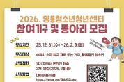 안녕일보 배윤 기자 | 수원시청소년청년재단 영통청소년청년센터가 2026년 활동에 함께할 청소년 참여기구 및 동아리 참가자를 모집한다. 모집 대상은 청소년운영위원회, 놀이동아리, 문화예술동아리연합 총 3개 분야이며, 선발 인원은 약 100명이다. ▲청소년운영위원회는 기관 운영 전반에 대해 청소년이 직접 의견을 제안하는 활동으로, 청소년의 주도성과 참여를 강화한다. ▲놀이동아리는 공동체 기반 놀이를 통해 건강한 또래 관계를 형성하고, ▲문화예술동아리연합은 댄스·밴드 등 다양한 장르에서 청소년의 문화예술 역량을 강화하는 동아리이다. 참여기구 및 동아리는 2026년 한 해 동안 진행되며, 센터의 주요 사업과 연계된 다양한 프로젝트에 참여하게 된다. 참여기구 및 동아리 모집 기간은 2026년 2월 9일까지이며, 신청은 홍보물 내 QR코드를 통해 온라인 신청서(네이버폼)를 작성해 제출하면 된다. 선발된 청소년들은 다양한 프로그램을 주도적으로 운영하게 된다. 영통청소년청년센터 관계자는“참여기구 및 동아리 활동은 청소년이 단순 참여자가 아닌, 스스로 활동을 만들어가는 주체로 성장할 수 있는 기회”라며 “다양한 관심과 열정을