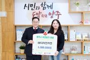 안녕일보 배윤 기자 | ㈜디자인가연이 12일 시장실에서 새해를 맞아 이웃돕기 성금 500만 원을 양주시에 기탁했다. 이번 기부는 지역에서 사업을 이어오며 느낀 감사의 마음을 지역사회와 나누고자 마련된 것으로, 기탁된 성금은 경기 사회복지공동모금회를 통해 관내 취약계층 지원에 사용될 예정이다. 김경미 대표는 “공간을 만드는 일은 결국 사람의 삶과 맞닿아 있다고 생각한다”며 “새해를 시작하며 어려운 이웃들의 일상에도 작은 힘이 되길 바라는 마음으로 기탁하게 됐다”고 말했다. 양주시 관계자는 “연초부터 지역사회를 향한 따뜻한 실천을 보여주신 김경미 대표님께 깊은 감사를 드린다”며 “전해주신 마음이 도움이 필요한 이웃들에게 잘 전해질 수 있도록 하겠다”고 전했다.