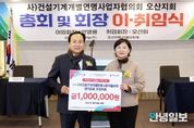안녕일보 배윤 기자 | 오산시는 사단법인 건설기계개별연명사업자협의회 오산지회가 저소득 취약계층 지원을 위한 이웃돕기 성금 100만 원을 기탁했다고 밝혔다. 이번 성금은 지난 9일 오산컨벤션웨딩뷔페에서 열린 건사협 오산지회 정기총회에서 마련된 것으로, 총회 행사의 일환으로 지역사회 나눔 실천을 위해 전달됐다. 기탁된 성금은 사회복지공동모금회를 통해 오산시 관내 취약계층의 겨울나기를 돕는 데 사용될 예정이다. 이날 정기총회에서는 지난 10년간 오산지회를 이끌어온 안영용 회장에 이어 오선희 회장이 신임 회장으로 취임했다. 오선희 회장은 “앞으로도 지역사회의 일원으로서 회원들과 함께 나눔과 봉사 활동을 지속하며 따뜻한 지역사회를 만드는 데 힘쓰겠다”고 밝혔다. 행사에 참석한 이권재 오산시장은 “건사협 회원 여러분들의 노고 덕분에 오산의 경제와 산업이 더욱 활기차게 발전하고 있으며, 더욱 안전한 산업 현장이 되어 가고 있다”며 감사의 말을 전했다. 한편, 건사협은 건설기계 사업자의 권익 보호는 물론, 국토교통부가 지정한 조종사 안전교육 등 전문 안전교육을 시행하는 단체로, 건사협 오산지회는 성금 기탁과 각종
