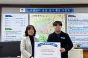 안녕일보 배윤 기자 | 성남시는 31일 종무식을 열고 성남시 도시브랜드 가치 제고에 기여한 ‘2025년 성남시 올해의 공무원 대상’ 수상자 2명에 대한 시상을 진행했다. 신상진 성남시장은 이날 오전 10시 시청 온누리실에서 열린 종무식에서 ‘2025년 성남시 올해의 공무원 대상’ 수상자인 정연선 팀장(미래산업과)과 김현지 주무관(대중교통과)에게 표창패를 수여했다. 이날 종무식은 직원 인공지능(AI) 경진대회 최우수 수상작 발표와 송년 동영상 시청, 시립 예술단의 축하공연 등으로 진행됐다. 신 시장은 송년사를 통해 “시민의 오늘을 지키고 도시의 내일을 열기 위해 묵묵히 소임을 다해 준 성남시 공직자 여러분께 감사드린다”며 “새해에도 시민을 우선에 둔 정책을 차질 없이 추진해 달라”고 당부했다. ‘올해의 공무원 대상’은 성남시 도시브랜드 가치를 높이고 적극적인 업무 추진으로 시정 발전에 기여한 공무원을 격려하고 우수 사례를 확산하기 위해 2022년 제정됐다. 올해로 3회째를 맞았다. 정연선 팀장은 포스코홀딩스 등 유치기업의 지역사회 기여 관리 성과를, 김현지 주무관은 성남형 버스 선별 준공