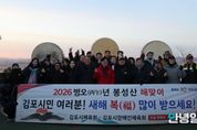 안녕일보 배윤 기자 | 김포시와 김포시체육회·김포시장애인체육회가 지난 1일 하성면 봉성산에서 ‘2026 봉성산 해맞이 행사’를 개최하고, 시민들과 함께 병오년 붉은 말의 해의 시작을 알렸다. 이번 행사는 새해 첫 일출을 맞이하며 시민 화합과 지역 공동체의 안녕을 기원하기 위해 마련됐다. 이른 새벽부터 봉성산을 찾은 시민들은 서로 새해 인사를 나누며 함께 산길을 오르고, 정상에서 떠오르는 해를 바라보며 한 해의 평안과 희망을 기원했다. 당초 예상보다 많은 약 1,000명의 시민이 참여해, 추운 날씨에도 불구하고 봉성산 일대는 새해를 맞이하는 시민들의 발걸음으로 활기를 띠었다. 행사는 오전 7시 봉성산 정상에서 시민 1,000여 명이 참여한 가운데 ▲성악 앙상블 ‘벨라보체 6인조’의 밝고 웅장한 새해 축하 공연을 시작으로 ▲타악연희단 ‘누리’의 박진감 넘치는 모듬북 공연이 이어지며 새해의 기운을 힘차게 알렸다. 이어 시민들이 직접 참여해 새해 소망과 행복, 지역 화합을 기원하는 프로그램이 진행되며 의미를 더했다. 이날 김병수 김포시장은 “붉은 말의 해, 김포에 붉은 교통이 들어와서 모든 분들에게 큰 기쁨이 됐으면