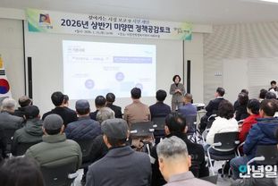 안녕일보 배윤 기자 | 안성시 미양면은 지난 1월 15일, 미양면행정복지센터 대회의실에서 주민 120여 명이 참석한 가운데 ‘2026년 상반기 미양면 정책공감토크’를 성황리에 개최했다. 이번 행사는 신년 시정방향을 공유하고 주민의 의견을 청취하기 위해 마련된 자리로, 성모유치원 원아들의 장구 공연으로 화기애애한 분위기 속에 시작됐다. 이어 2026년 시정설명, 미양면 현안사항 발표, 2025년 하반기 건의사항 검토결과 보고 순으로 진행되며, 주민들과 소통의 시간을 가졌다. 시정설명은 농축산업, 문화·관광, 교통, 환경 등 다양한 분야를 주제로 폭넓게 다뤘으며, 현안사항 발표 시간에는 이채연 주민자치회 위원이 ‘아름다운 햇살 마을, '미양 : 잇다'’를 주제로 ‘민관협력 주민참여 행사’를 제안해 참석 주민들의 큰 호응을 얻었다. 이번 제안은 시정과 면정의 실질적 발전을 위한 새로운 협력 모델로 주목받았다. 안성시 관계자는 “바쁜 일정에도 정책공감토크에 참석해 주신 주민 여러분께 감사드리며, 지속가능한 성장 도시 안성을 만들기 위해 시민과의 소통을 강화하겠다”라며 “앞으로도 많은 관심과 참여를 부탁드린다”고 말했다