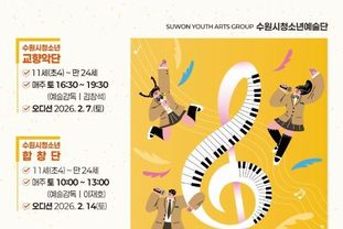 안녕일보 배윤 기자 | 수원시청소년청년재단(이사장 최종진) 수원청소년문화센터는 청소년의 문화예술 역량 강화와 전문 예술 인재 육성을 위해 '2026. 수원시청소년예술단 신규단원'을 모집한다. 수원시청소년예술단은 △교향악단 △합창단 △뮤지컬단 등으로 구성되어 있으며, 분야별 예술단 운영을 통해 청소년들의 예술적 성장과 참여 경험을 단계적으로 지원하고 있다. 이번 모집은 1월 31일까지 진행되며, 지원은 포스터 내 QR코드를 통한 온라인 지원서 작성으로 가능하다. 오디션을 통해 선발된 단원들은 정기연습과 집중연습, 정기공연, 지역사회 연계 초청공연 등 다양한 활동에 참여하게 된다. 수원청소년문화센터는 청소년이 자신의 역량과 잠재력을 발휘할 수 있도록 맞춤형 예술교육과 활동 지원을 지속적으로 추진해 나갈 계획이다. 자세한 사항은 수원시청소년청년재단 홈페이지를 통해 확인할 수 있다.