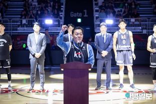 안녕일보 배윤 기자 | 이재준 수원특례시장이 4일 수원KT소닉붐아레나에서 열린 ‘2025-2026 프로농구 KBL 홈 개막전’에서 개막선언을 했다. 수원KT소닉붐과 부산KCC의 홈 개막전에서 축사를 한 이재준 시장은 “시민과 함께 수원KT 소닉붐의 우승을 기원하며 시민들과 함께 응원하겠다”고 말했다. 이재준 시장은 개막선언을 했다. 수원KT소닉붐은 개막전에서 85대 67로 승리했다.
