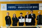 안녕일보 배윤 기자 | (재)화성시문화관광재단(대표이사 안필연) 봉담와우도서관과 수원대학교는 지난 4월 6일 수원대학교 본관 대회의실에서 지역발전과 독서문화 진흥을 위한 업무협약(MOU)을 체결했다. 이번 협약은 양 기관이 상호 유기적인 협력체계를 바탕으로 지역의 인문적 가치 발굴과 지역사회 교육·문화 활성화에 함께하기 위해 마련됐다. 양 기관은 도서관의 시민 접근성과 대학의 교육·연구 자원을 연계해 주민 및 청소년 대상 프로그램, 지역 연계 활동, 지역자원 조사연구 등을 공동 추진할 계획이다. 정구선 도서관본부장(화성시문화관광재단)은 “도서관은 주민 생활 가까이에 있는 공공 플랫폼”이라며 “수원대학교와의 협력을 통해 지역사회와 연결되는 다양한 프로그램을 확대해 나가겠다”고 밝혔다. 임선홍 수원대학교 부총장(라이즈사업단장)은 “대학의 시설과 인적 자원을 지역사회와 연결해 실질적인 협력 성과를 만들어가겠다”며 “지역의 가치 발굴과 활성화에 기여할 수 있도록 노력하겠다”고 말했다. 양 기관은 이번 협약을 계기로 지역사회와 연계한 교육·문화 협력사업을 확대하고, 주민이 체감할 수 있는 실질적인 프로그램