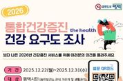 안녕일보 배윤 기자 | 평택시 송탄보건소는 2026년 통합건강증진사업 계획수립을 위해 지역주민을 대상으로 건강요구도 설문조사를 진행한다고 밝혔다. 이번 조사는 지역사회 주민들의 만성질환 관리, 신체활동, 비만 예방관리 등 건강 관련 요구를 파악하여, 2026년 지역사회 통합건강증진사업 계획수립에 반영하기 위해 마련됐다. 설문 내용은 △보건소 건강증진사업에 대한 참여 경험 및 인식도 △건강증진을 위해 가장 필요하다고 생각하는 우선 사업 △생애주기별 보건사업 대상 우선순위 등 총 10개 문항으로 구성됐으며, 설문 결과는 2026년 통합건강증진사업의 세부 사업 발굴과 우선순위 설정을 위한 기초자료로 활용될 예정이다. 설문조사는 평택시와 보건소 누리집과 송탄보건소 카카오톡 채널(송탄보건소 건강정보톡!) 등에 게시된 정보무늬(QR코드)를 통해 온라인으로 진행되며, 설문조사에 참여한 주민을 대상으로 추첨을 통해 모바일 상품권을 제공할 예정이다. 송탄보건소 조민수 소장은 “이번 건강요구도 조사는 주민의 목소리를 직접 듣고 지역에 맞는 건강증진사업을 추진하기 위한 중요한 과정”이라며 “시민들의 적극적인 참여를 부