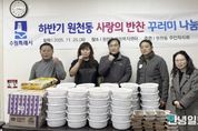 안녕일보 배윤 기자 | 수원시 영통구 원천동 행정복지센터는 원천동 주민자치회 주관으로 진행하는 '2025년 사랑의 반찬 꾸러미 나눔' 사업을 통해 관내 취약계층 100가구에 반찬 나눔을 실시했다고 25일 밝혔다. 주민자치회는 지역의 어려운 이웃을 돕기 위해 반찬을 직접 조리해 기초생활수급자, 차상위계층, 복지 사각지대 대상자 등 총 100가구에 전달했다. 1차 꾸러미는 2025년 6월 17일, 2차 꾸러미는 11월 25일에 각각 배부를 완료했다. 올해 꾸러미 구성은 주민자치회 위원들이 정성껏 준비한 제육볶음 등으로, 원천동 건강복지팀과의 연계를 통해 대상 가정에 직접 방문하여 전달하며 안부 확인도 함께 진행했다. 원천동은 이번 나눔 활동을 통해 소외된 이웃들의 정서적 고립감을 해소하고, 더 따뜻한 지역 공동체 조성에 기여할 것으로 기대하고 있다. 윤두원 원천동 주민자치회장은 “사랑의 꾸러미 나눔을 통해 관내 취약계층을 지원하고 이웃사랑 실천을 위한 좋은 기회가 됐기를 바란다”고 전했다.