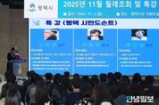 안녕일보 배윤 기자 | 평택시는 지난 11월 3일 평택시청 직원 180명이 참여한 가운데 평택 ‘시민도슨트’의 '평택을 도슨트하자' 특강을 진행했다. 이번 특강은 '평택 시민도슨트 아카데미' 사업을 통해 양성된 ‘시민도슨트’가 직접 기획하고 참여해, 공직자와 시민이 함께 평택의 역사·문화·가치를 되새기는 자리로 마련됐다. 첫 순서로는 ‘환경도슨트’ 차윤정이 ‘환경을 담은 예술의 여정’을 주제로, 얼굴없는 작가 뱅크시의 ‘쇼 미 더 모네(show me the Monet)!’와 함께 평택시의 ‘수소시범도시’를 소개하면서 친환경 수소 정책을 환경예술작품으로 승화하는 의미 있는 시간을 가졌었다. 이어 신희연 ‘글로컬도슨트’는 ‘한미동맹 70년의 시작, 그날의 기억’을 주제로, 스미스 특수임무부대 전투와 평택에서 비롯된 한미동맹의 역사적 의미를 전하며 깊은 울림을 전했다. 마지막으로 ‘예술도슨트’ 류근원의 ‘나를 도슨트하자’는 본인의 도전정신을 통한 창조적 삶을 공유하며 ‘학습이 곧 자기 성장의 과정’임을 강조했다. 특히 이날 발표에 참여한 해설사(도슨트)들이 착용한 브로치는 평택시의 시화인 ‘