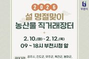 안녕일보 배윤 기자 | 부천시는 설 명절을 앞두고 2월 10일부터 12일까지 시청 정문 앞에서 ‘2026년 설 명절맞이 농산물 직거래장터’를 연다. 이번 직거래장터에는 공주시, 무주군, 옥천군, 진도군, 봉화군 등 자매결연 도시를 포함해 서산시, 안동시, 부천 지역 전통시장(한신시장, 제일시장), 팔도향우회(강원·호남)가 함께한다. 각 지역 참가 단체는 직접 재배한 농수산물과 특산품을 준비해, 시민들이 설 차례상과 선물용으로 활용할 수 있도록 다양한 성수품을 선보일 예정이다. 직거래장터에서는 사과, 알밤, 버섯 등 신선 농산물과 미역, 다시마, 김, 멸치, 젓갈 등 수산 가공품, 된장, 고추장, 참기름, 한과 등 지역 특산품이 판매된다. 판매 품목은 품질이 우수한 우리 농산물로, 시중가보다 평균 10% 이상 저렴하게 제공된다. 이수미 부천시 도시농업과장은 “이번 직거래장터는 설 명절을 앞두고 시민들이 전국의 다양한 농특산물을 한자리에서 만날 수 있도록 마련한 자리”라며 “가격 부담은 줄이고 명절의 따뜻한 정취는 더할 수 있도록 준비한 만큼, 많은 시민이 함께 즐기길 바란다”고 말했다.