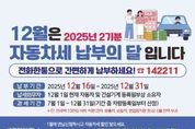 안녕일보 배윤 기자 | 평택시는 2025년 12월 정기분 자동차세 16만 5천 건에 대해 199억 원을 부과·고지하고 납부 기한 내 납부하도록 적극적인 홍보에 나섰다고 밝혔다. 자동차세는 연 2회(6월, 12월) 부과하는 정기분 세목으로, 이번 제2기분 자동차세 부과 대상은 과세기준일인 12월 1일 현재 평택시에 등록되어있는 자동차, 이륜차, 건설기계 등이며, 7월 1일부터 12월 31일까지의 보유기간에 대해 차량의 용도와 차종, 배기량, 차령에 따라 세액을 차등 적용하여 부과한다. 아울러, 연세액 10만 원 이하의 경차·화물차·승합차량은 6월에 전액 과세하나 6월 이후에 취득했다면 이번 제2기분 과세 대상에 포함되며, 자동차세를 연납한 차량은 이번 과세 대상에서 제외된다. 납부 기한은 12월 16일부터 31일까지이고, 고지서는 우편 발송되며 전자고지 신청자는 전자우편 또는 모바일 앱에서 확인이 가능하다. 납부는 ‘지방세입계좌’ 서비스를 통해 이체 수수료 없이 납부할 수 있으며, 이외에도 전국 금융기관 방문 혹은 은행 자동화기기(CD/ATM) 등에서도 고지서 없이 신용카드 또는 통장으로 납부할 수