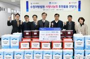 안녕일보 배윤 기자 | 지난 27일 수원지방법원은 수원시 영통구에 연말지역사회 나눔의 일환으로 직접 담근 김치, 라면, 화장지 각 30박스 등 총 90박스의 물품을 기부했다. 전달식에는 수원지방법원와 영통구 관계자들이 참석해 따뜻한 온정을 나누는 시간을 가졌다. 2021년부터 영통구에 정기후원을 하는 수원지방법원 봉사단체‘사랑나눔회’는 직접 김치를 담그고 후원물품을 더하여 관내 수급자, 취약계층에게 지원하며 이웃에 대한 사랑과 나눔을 실천하고 '국민에게 가까이 있는 법원상'구현에 힘쓰고 있다. 이번 후원물품은 지역 내 취약계층 30여 가구에 배분될 예정이다. 김세윤 수원지방법원장은 “작은 정성이지만 지역 주민들에게 도움이 되길 바란다. 앞으로도 지역사회외 함께하는 따뜻한 법원이 되겠다”고 말했다. 장수석 영통구청장은 “수원지방법원의 꾸준한 나눔 실천에 진심으로 감사드린다. 기탁된 물품을 도움이 필요한 가정에 소중히 전달하겠다”고 감사 인사를 전했다.