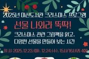 안녕일보 배윤 기자 | 김포시 마산도서관은 오는 12월 23일과 24일 이틀에 거쳐 크리스마스를 기념한 체험프로그램 ‘선물 나와라 뚝딱!’이 진행된다. 이번 프로그램은 ‘크리스마스’와 관련된 다양한 그림책에 대해 알아보고 직접 가족을 위한 선물과 소원 카드를 만들어보는 독서문화프로그램이다. 컬러링과 다각면 조립을 통한 크리스마스 무드등 만들기, 거미줄 모양의 매듭을 지어 드림캐쳐 만들기, 소원을 적은 카드를 만들어 도서관 내 크리스마스트리에 걸어보기 등을 통해 마산도서관 이용자에게 소소한 행복을 선사할 예정이다. 프로그램은 김포시민 80명을 대상으로 12월 23일과 24일 이틀 동안 15시, 16시 총 4회차로 마산도서관 3층 문화교실에서 진행되며, 참여 신청은 12월 10일 오전 10시부터 각 차시별 20명씩 신청이 가능하다. 김포시 마산도서관 홈페이지 문화행사 신청(모집/행사 부분)을 통한 온라인 신청으로 진행할 예정이며 자세한 사항은 마산도서관 홈페이지를 참고하거나 마산도서관으로 문의하면 된다.