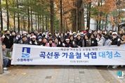 안녕일보 배윤 기자 | 수원시 권선구 곡선동 행정복지센터는 24일, 가을을 맞아 낙엽 대청소를 실시했다. 이번 대청소는 곡선동 직원들과 환경관리원, 통장협의회 단체원 등 50여 명이 참여했으며 권선3지구의 아파트와 아파트 사이 보행로를 중심으로 진행했다. 참여한 봉사자들은 여러 조로 나뉘어 낙엽을 청소하고 보행 환경 미관을 개선해 깨끗한 거리 조성을 위해 적극 힘썼다. 대청소에 참여한 어느 단체원은 “단체원들과 함께 청소하여 깨끗해진 거리를 보니 마음이 뿌듯하고 보람이 있었다”라고 소감을 전했다. 김미현 동장은 “낙엽 청소에 적극 참여해주신 단체원 등 모든분들께 깊이 감사드리며 급격한 기온하락으로 낙엽이 많이 떨어져 다 함께 낙엽 대청소를 추진해 깨끗하고 안전한 곡선동이 됐다”라며 “다가오는 동절기를 대비하여 주민들의 안전한 보행환경을 만들기 위해 최선을 다하겠다”라고 전했다.