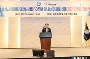 안녕일보 배윤 기자 | 화성특례시의회는 16일, 푸르미르호텔 그랜드 볼룸홀에서 열린 ‘화성시아파트연합회 창단 10주년 및 화성아파트신문 창간 10주년 기념식’에 참석해 아파트 공동체 문화 발전과 건강한 주거 문화를 응원했다. 이날 기념식에는 배정수 의장을 비롯해 장철규 기획행정위원장, 임채덕 경제환경위원장, 김미영 의원이 참석했고, 화성시아파트 입주자대표회의 연합회 및 화성아파트신문 관계자와 주민 등 약 100명이 함께해 10년의 성과를 축하하고 미래 비전을 다졌다. 배 의장은 축사를 통해 “행복한 아파트 주거 문화 개선을 위해 헌신해 오신 화성시아파트연합회와 입주민 대표자 여러분, 그리고 아파트의 목소리를 경청하고 대변해 온 화성아파트신문 관계자 여러분의 열 번째 생일을 진심으로 축하드린다”며 감사의 뜻을 전했다. 덧붙여 배 의장은 “의회는 앞으로도 아파트 입주민의 삶의 질 향상과 공동주택의 미래 발전을 위해 연합회와 아파트신문과 함께 아름다운 동행을 이어가겠다”며 “시민 모두가 보다 행복하고 안전한 주거환경 속에서 살아갈 수 있도록 정책적 지원에 최선을 다하겠다”고 밝혔다. 한편, 이번 행사는