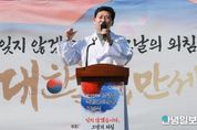 안녕일보 배윤 기자 | 용인특례시는 21일 오후 처인구 용인중앙시장 놀이광장(금복교) 김량장 학생만세운동 기념표석 일원에서 ‘제107주년 김량장 독립만세운동 기념행사’를 열었다고 밝혔다. 용인문화원 부설 기관인 용인독립운동기념사업회가 주관한 이날 행사에는 이상일 시장을 비롯해 독립유공자 후손, 지역 주민 등 약 200여 명이 참석했다. 용인 지역 만세운동은 1919년 3월 21일 원삼면 좌찬고개에서 시작돼 포곡·수지·기흥으로 확산되며 4월 3일까지 이어진 대규모 항일운동으로, 당시 1만 3200여 명이 참여한 것으로 기록돼 있다. 특히 김량장에서는 1919년 3월 24일 졸업식을 마친 김량장공립보통학교(현 용인초등학교) 학생 20여 명이 만세운동을 주도하자 시장 상인과 주민들이 합세하면서 독립쟁취 시위가 확산됐고, 그로 인해 많은 사람들이 희생됐고 탄압을 받았다. 시는 이러한 역사적 의미를 되새기기 위해 107년 전 독립만세운동이 벌어진 현 중앙시장 금복교 광장에서 기념행사를 마련했다. 이상일 시장은 축사를 통해 “3·1절 노래에 ‘선열하 이 나라를 보소서’란 대목이 있다. 107년 빼