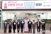 안녕일보 배윤 기자 | 수원특례시의회는 2월 5일, 시청 본관 1층 로비에서 열린 ‘사랑의 온도탑’ 폐막식에 참석해 시민과 함께한 나눔의 의미를 되새겼다. 이날 폐막식에는 이재식 의장을 비롯해 사정희 의원(더불어민주당, 매탄1·2·3·4)이 함께 참석해 시민 참여로 이어진 나눔의 성과를 공유했다. 이번 사랑의 온도탑 캠페인은 연말연시 이웃 돕기를 위한 시민들의 자발적인 참여로 진행됐으며, 목표액 10억 원 대비 9억 1천만 원을 모금해 달성률 91%를 기록하는 성과를 거두며 지역사회 나눔 문화 확산에 기여했다. 이재식 의장은 인사말에서 “어려운 시기에도 사랑의 온도탑에 함께해 주신 시민 여러분 덕분에 큰 목표를 초과 달성할 수 있었다”며 감사의 뜻을 전했다. 이어 “온도탑은 마무리됐지만, 우리 주변에 여전히 도움이 필요한 이웃은 없는지 더 세심히 살펴보는 계기가 되길 바란다”고 말했다 수원특례시의회는 앞으로도 나눔과 연대의 가치를 확산시키는 데 의회 차원의 관심과 지원을 이어갈 계획이다.