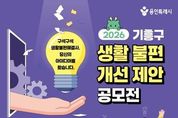 안녕일보 배윤 기자 | 용인특례시 기흥구는 오는 6일부터 5월 4일까지 ‘2026 기흥구 생활불편개선 제안 공모전’을 개최한다. 이번 공모전은 일상에서 시민이 직접 체감하는 불편사항을 발굴하고, 이를 개선할 수 있는 다양한 방안을 모색하고자 마련됐다. 주제는 일상생활에서 체감하는 생활 불편 개선 아이디어다. 시설·환경 등 각종 생활 불편 사항이나 비효율적인 행정이나 규제 등 다양한 분야의 의견을 받는다. 생활 불편에 관심 있는 누구나 참여할 수 있다. 시 누리집 ‘용인소식’의 ‘고시공고’ 또는 기흥구 누리집 ‘참여광장’의 ‘기흥소식’에서 서식을 내려받아 작성하면 된다. 작성한 제안은 방문‧우편(기흥구 관곡로 95 기흥구청 별관 2층 자치행정과 기획감사팀)으로 내면 된다. 전자우편으로도 제출할 수 있다. 부서 검토와 제안공모심사위원회 검토를 거쳐 최종 선정된 제안은 시상금(최대 100만 원)이 지급된다. 또 관련 부서 검토 등을 거쳐 행정에 반영하거나 실효성 있는 정책으로 이어질 수 있도록 추진할 방침이다. 자세한 사항은 시 또는 구 누리집에서 확인할