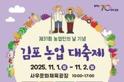 안녕일보 배윤 기자 | 김포시가 오는 11월 1일부터 2일까지 사우문화체육광장에서 '제31회 농업인의 날 기념 김포농업 대축제'를 개최한다. 이번 행사는 ‘오늘을 심어 내일을 키우는 通(통)하는 김포농업’을 주제로, 제31회 농업인의 날 기념식, 인삼축제, 금빛나루행사, 축산물 시식 및 홍보 행사를 통합하여 추진된다. 기념식은 11월 1일 오전 10시 30분부터 진행되며, 식전공연과 함께 김포 농업 발전에 기여한 우수농업인 표창이 진행된다. 농업인과 유관기관 관계자, 시민 등 2,000여 명이 참석할 예정으로, 농업인의 노고를 격려하고 농업의 중요성을 공유하는 뜻깊은 자리가 될 것으로 보인다. 행사장에서는 농업 관련 기관과 단체가 참여하는 체험·전시·판매 행사가 다채롭게 진행된다. 특히 농·축산물 직거래 판매와 시식 행사, 금쌀 떡볶이 체험, 시민 참여 김장행사, 장기자랑 등 시민이 직접 참여할 수 있는 프로그램이 마련되어 큰 호응이 기대된다. 김포시 관계자는 “김포농업 대축제 행사는 농업인들의 노고를 격려하고, 도시민과 농업인이 함께 어울리는 화합의 장”이라며 “앞으로도 지속 가능한 김포농업 발전