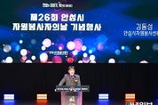 안녕일보 배윤 기자 | 안성시자원봉사센터는 12월 10일 안성맞춤 아트홀 소공연장에서 ‘제26회 자원봉사자의 날 기념행사’를 개최했다. 이번 행사는 안성시장, 국회의원, 시의회 의장 등 내빈을 비롯해 수상자와 자원봉사자, 유관 기관장, 축하객 등 약 300명이 함께해 지역사회 나눔과 봉사의 가치를 되새기는 뜻깊은 자리로 마련됐다. 행사는 2025년도 활동 영상 상영과 뮤지컬팀 “인터미션”의 식전 공연으로 문을 열었으며, 이어 본식에서는 한 해 동안 헌신적으로 활동한 개인과 단체 자원봉사자들에게 감사와 격려의 뜻을 전하는 시상식이 진행됐다. 안성시자원봉사센터 김동성 센터장은 ‘올 한 해에도 지역사회의 다양한 현장에서 따뜻한 마음으로 함께해 주신 자원봉사자분들에게 진심으로 감사드린다’라며 ‘앞으로도 자원봉사자들이 자긍심을 가지고 지속적으로 활동할 수 있도록 최선을 다해 지원하겠다’라고 전했다.
