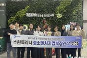 안녕일보 배윤 기자 | 수원특례시가 중소벤처기업부가 주관한 벤처창업진흥 유공 포상에서 ‘우수정책입안단체’로 선정돼 중기부 장관상을 받았다. 시상식은 27일 경기창조경제혁신센터에서 열린 ‘2025 경기 딥테크 스타트업 FLEX’ 행사 중 열렸다. 수원시는 창업지원센터 운영, 수원기업새빛펀드 조성, 중소·벤처기업 자금지원 등 다양한 창업·기업 성장 정책을 운영해왔다. 먼저 2012년 개소한 창업지원센터를 중심으로 창업기업 689개사를 보육하고, 1133억원의 누적 매출, 208억원의 투자유치를 달성했다. 관내 창업보육센터와 3D프린터 특화형 1인 창조기업센터 운영을 지원해 2024년 한 해 동안 230여개 기업을 지원해 고용 801명, 매출 660억원, 투자유치 136억원 등의 성과를 이뤘다. 또 기술력은 있지만 자금력이 부족한 중소·벤처·창업기업이 성장할 수 있도록 투자하는 펀드 ‘수원기업새빛펀드’도 2023년 11월 출시된 1차 수원기업새빛펀드는 3149억 원이 조성됐고, 수원 기업 투자액은 315억 4000만 원(총 19개사)에 달했다. 2차 펀드 조성을 위해 지난 10월 20일에는 8개 운용사와 업무협약을