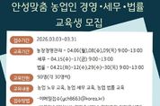 안녕일보 배윤 기자 | 안성시농업기술센터가 지역 농업인의 안정적인 영농 활동을 돕기 위해 오는 31일까지 ‘안성맞춤 농업인 경영·세무·법률 교육’ 교육생을 모집한다. 이번 교육은 전문가 특강을 통해 농가 운영 중 발생할 수 있는 경영적, 법적 문제를 사전에 예방하고 해결할 수 있는 역량을 키워주기 위해 마련됐다. 교육은 오는 4월 6일부터 30일까지 주제별 지정된 날짜에 진행된다. 모집 분야는 ▲농업 경영 ▲농업 세무 ▲농업 법률 등 3개 과정이며, 분야별로 30명씩 총 90명을 선발한다. 신청 인원이 초과할 경우 내부 선발 기준에 따라 교육생을 최종 선정할 예정이다. 신청 자격은 농업 경영에 관심 있는 안성시민이라면 누구나 가능하며, 접수는 3월 31일까지다. 참여를 희망하는 시민은 이메일을 보내거나 농업기술센터 농업지도과(보개원삼로 219)를 방문해 신청하면 된다. 시 관계자는 “농업인의 눈높이에 맞춘 경영·법률·세무 전문가 특강이 농가 역량을 강화하는 좋은 기회가 될 것”이라며, “안성 농업의 내실을 다지고 싶은 시민 여러분의 많은 관심과 참여를 바란다”고 말했다.