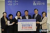 안녕일보 배윤 기자 | 수원시 팔달구와 구 지역사회보장협의체는 지난 15일 구청장실에서 ‘팔달구 이웃사랑 바자회’ 성금 전달식을 가졌다. 지난 9월 23일 팔달구 지역사회보장협의체가 주관하고, 관내 10개 동 지역사회보장협의체 및 사회복지시설, 유관기관이 힘을 모아 추진한 ‘팔달구 이웃사랑 바자회’ 행사를 통해 전달된 성금은 총 252만 1천원으로, 해당 성금은 팔달구 취약계층을 지원하기 위한 구 특화 사업에 사용할 예정이다. 권남호 구 지역사회보장협의체 공동위원장은 “이웃의 어려움을 함께 나누기 위해 한마음으로 참여해주신 분들께 감사드린다”며, “이번 성금이 지역 내 어려운 이웃들에게 따뜻한 희망으로 전해지길 바란다”고 말했다. 이상균 팔달구청장은 “팔달구민의 자발적인 참여와 나눔이 지역사회를 더욱 따뜻하게 만든다”며, “앞으로도 민관이 함께하는 복지공동체 실현을 위해 적극 노력하겠다”고 밝혔다.