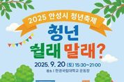 안녕일보 배윤 기자 | 안성시는 청년의 날을 기념해 ‘2025 안성시 청년축제(부제: 안성청년 쉴래말래?)’를 9월 20일 15:30부터 21:00까지 한경국립대학교 운동장에서 개최한다. 축제는 메인무대 프로그램과 4개 체험 ZONE으로 구성돼 청년이 쉬고 즐기며 서로 연결되는 청년 참여형 축제로 꾸며진다. 메인무대는 ▲식전공연 ▲개막식 ▲안성청년가왕 본선 ▲토크콘서트 ▲청년독립영화 상영 및 폐회 순으로 진행된다. 특히 올해 하이라이트인 ‘안성청년가왕’은 8월 중 2주간 진행한 공개모집에 20팀이 지원, 예선 심사를 거쳐 본선에 오를 6팀(명)이 확정됐다. 본선은 1인(팀)당 자유곡 1곡·5분 무대로 치러지며, 심사위원 평가와 관객투표 합산으로 최종 수상자를 가린다. 토크콘서트는 개그맨 김영희가 ‘소통왕 말자’ 콘셉트로 진행하며, ‘청년 고민 타파’를 주제로 유쾌한 소통의 무대를 선보인다. 폐막 프로그램으로는 청년독립영화 ‘너를 건너는 시간’ 상영이 마련되어 축제의 여운을 이어갈 예정이다. 현장은 대학생·체험·플리마켓·푸드 등 4개 ZONE으로 운영된다. 대학생 ZONE에는 한경국립대학교, 한국폴리텍대 반도체융
